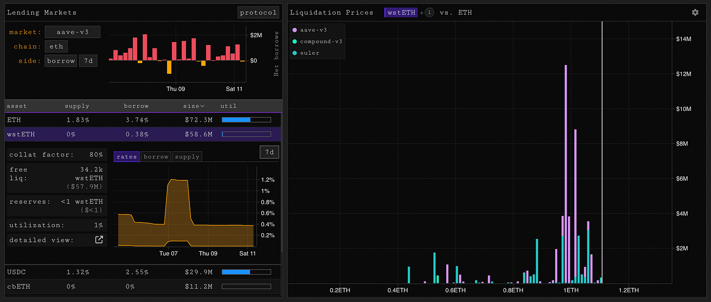 Long awaited Aave V3 has deployed on mainnet, it has been running smoothly on optimism/arbitrum/others for months now, but mainnet will be the true test to see how much liquidity it attracts. Initially e-mode is the must substantive addition to the protocol. Historically DeFi spot lending markets have attached an LTV to each asset and regardless of borrow/collateral mix that LTV is applied equally. This has clear inefficiencies in the case of highly correlated assets. Liquid staking derivatives are a great example, cbETH/ETH has a yearly volatility roughly equivalent to the staking yield, whereas cbETH/USD has is a 60-150 vol asset. e-mode allows for borrow specific LTVs within the monolithic aave pool of liquidity. Aave is already the leader in LSD leverage with a custom integration of stETH in v2, v3 will allow for more efficiency with e-mode. The launch comes on the back of compound-v3 launching an ETH only borrow pool with cbETH and wstETH as collateral assets. Pooled models have a huge advantage over usd borrows (maker/fraxlend/abra) since an ETH borrow can be much more safely levered up. Maker is aware of this disadvantage and has ETHD in the works, an ETH pegged DAI style synthetic. Challenges here are liquidity (who will actually want to hold this vs. stETH) but I expect maker to not be alone in this endeavor.