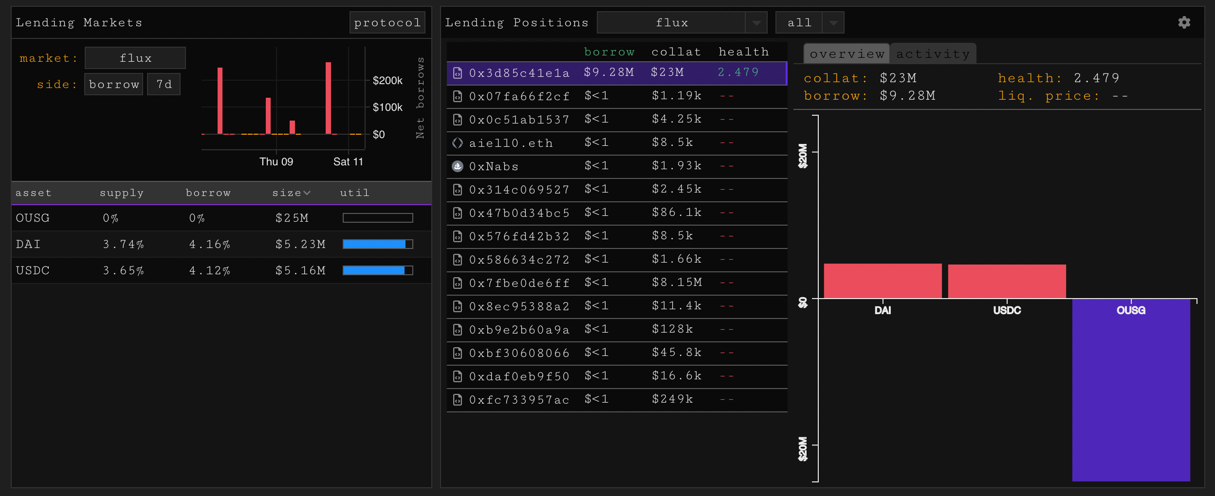 Ondo launched Flux protocol this week, a lending protocol that allows permissionless supplying of USDC & DAI and the gated ability to borrow stables against OUSG, a wrapper for short term US treasuries. Borrowers get to leverage up treasury yield, while depositors get access to UST rates minus a spread. With only one large borrower onboarded flux has already pushed supply rates to >3.5% on USDC, head and shoulders above deposit APRs on other venues. Hard to understate the effects OUSG could have towards onchain lending, borrowing just got more expensive and reflective of real rates. The rate limiter for passthrough is onboarding borrowers through Ondo’s system, but if scaled up flux will rerate interest rates across DeFi.