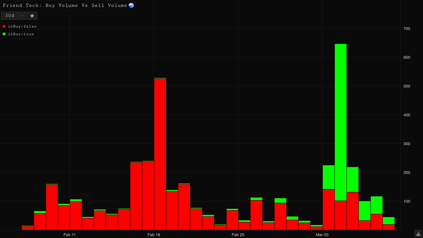 The accompanying rumour is that the token will be a 100% community airdrop, in this case the team/investors would get no tokens beyond the airdrop they get from their own points. While the token launch could well be a flop, friend.tech already did the hard part of onboarding users to their platform and once the token goes live with liquidity mining incentives, it would not be surprising to see activity pick back up again in a significant way. So far the increase in buying activity can only be a positive sign of what is to come in the near future for our old friend friend.tech...