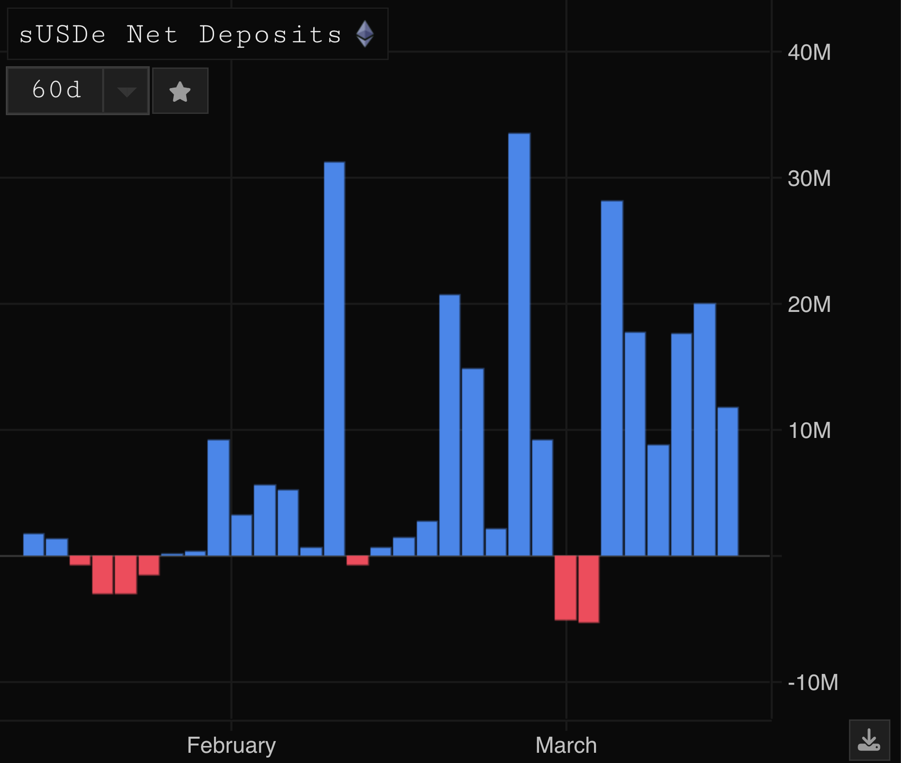 With the staked version of USDe (sUSDe) paying a very high yield (currently in excess of 60%), it is no surprise that we have seen consistent inflows over time: