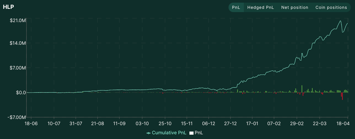 But most of all, Hyperliquid as a business is very profitable. They use a similar mechanism to GMX’s GLP, called HLP. Users can deposit into the HLP vault to contribute liquidity to what is essentially the main liquidity provider, market maker and liquidator for the whole protocol, and share in the profits. The HLP vault is up only and to date has made $19.6m in profit.
