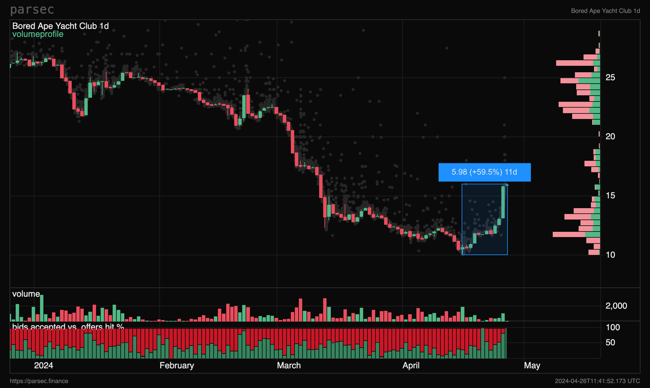 Apes are 60% off the bottom in the last 11 days and back up to a floor of 17e.