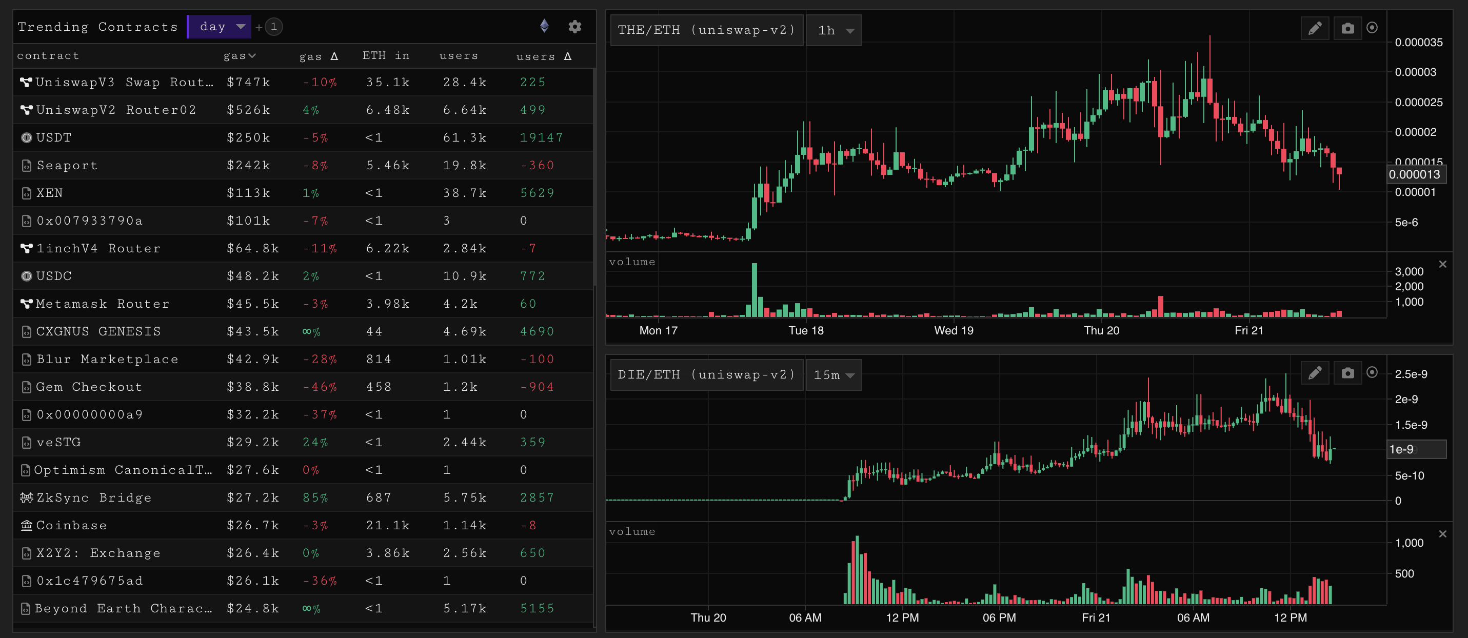 When the Uniswap-v2/v3 router pops off it means the casino is back in town. This time lead by coins based on Vitaliks use of hypothetical tickers in tweets. With the base fee ticking to over 50 gwei for the first time since july (even higher than during merge). Coming on the back of a XEN, a pulsechain fork that incentivized sybil transactions for ponzi free rolls. Willingness to spend is up, regardless of how unsavory applications.