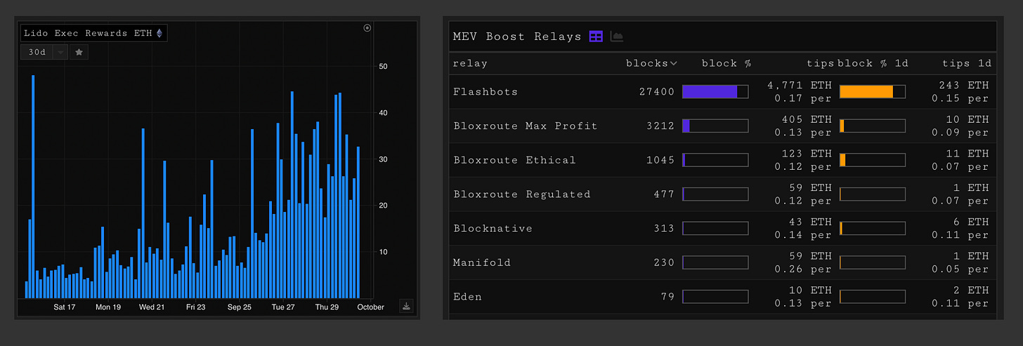 Despite cycle lows in on chain activity, mev boost yields have been coming in higher than expected. Lido MEV rewards are a great overall proxy for this and they have been steadily increasing since a flurry post merge. If these market conditions are producing ~0.15 ETH per block MEV yields staking becomes incredibly attractive when DEX volumes pick up.